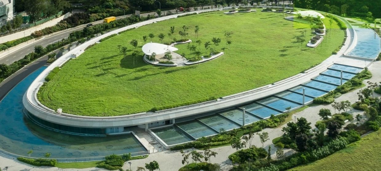 The large-scale, dual-mode Keppel Marina East Desalination Plant is the first of its kind in Singapore. The unique desalination plant treats two sources of water: seawater from the Singapore Strait and fresh storm water from the Marina Reservoir, depending on the prevailing weather conditions. Moreover, the treatment equipment is located underground and the exterior of the plant features a lush green rooftop for community recreation, with a capacity of 700 people.